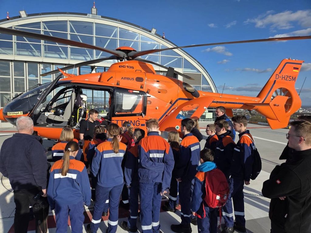 Grund genug für unsere Jugendfeuerwehr, den Hubschrauber an seinem Standort auf dem Dach der BG-Unfallklinik genauer unter die Lupe zu nehmen. Am vergangenen Mittwoch (1. April) ergab sich die Gelegenheit dazu und das Wetter spielte auch mit.