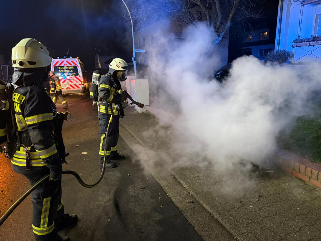 An der Einsatzstelle im Edith-Stein-Weg wurden die Einsatzkräfte durch Fußgänger angesprochen, dass im Bereich Feldstraße Ecke Bremer Straße mehrere Feuerwerksbatterie brennen. Nachdem die Meldung durch die Besatzung des Einsatzleitwagens bestätigt werden konnte, wurde auch dieses Feuer gelöscht.